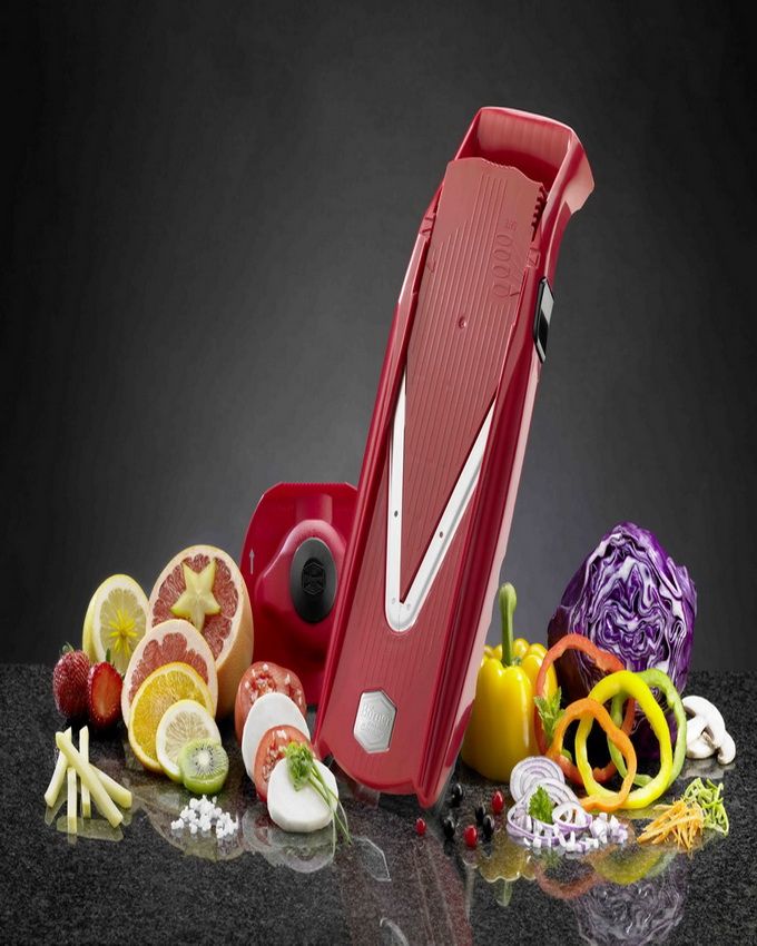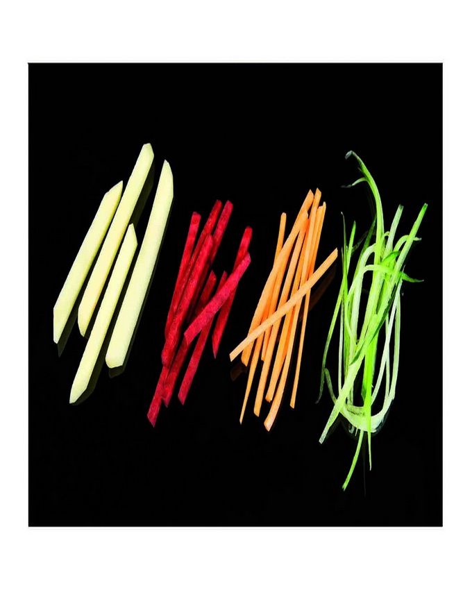 - این محصول میوه ها و سبزیجات مختلف را به صورت برش خورده و با کمک تنظیمات روی دسته در چهار ضخامت خرد میکند و سبزیجات نرمتر مانند گوجه فرنگی را به راحتی برش می زند