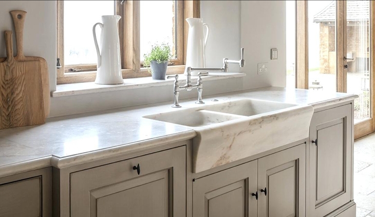 استفاده از سنگ طبیعی در سینک ظرفشویی زیبایی بی نظیری به دکوراسیون اشپزخانه می دهد. از جمله سنگ های طبیعی می توان به سنگ مرمر اشاره نمود. این نوع سنگ دوام و مقاومت بالایی دارد اما به دلیل رنگ روشن آن خیلی زود کدر می شود و لک بر می دارد.